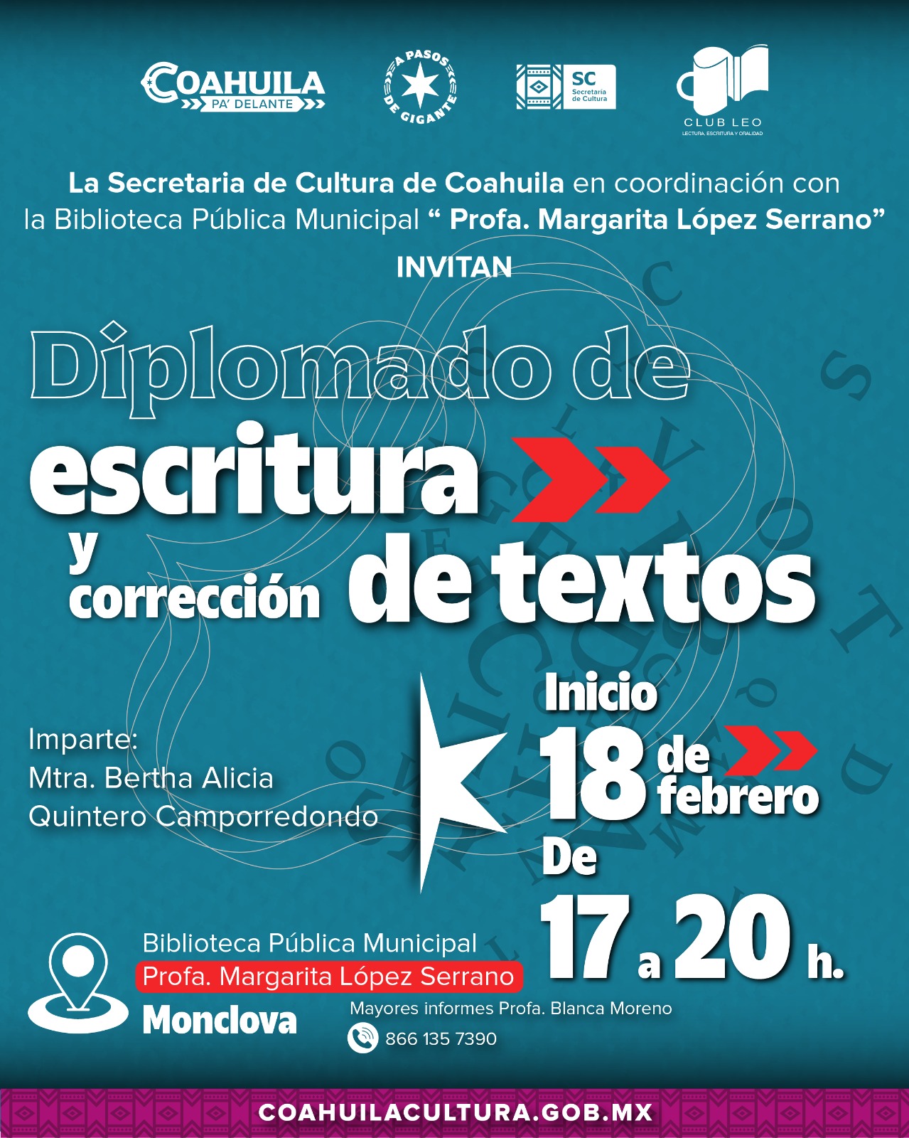 En Coahuila la cultura es patrimonio de todos, por ello, trabajamos por su preservación, promoción y difusión, respetando siempre su diversidad de manifestaciones y promoviendo el trabajo de los artistas coahuilenses.